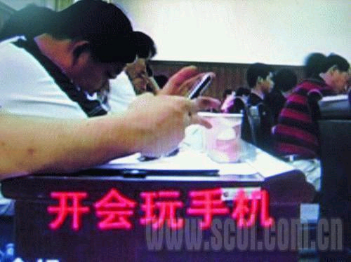 班時(shí)間打游戲、QQ聊天;會(huì)場(chǎng)上,一名干部正在埋頭大睡,還有人在無聊地玩著手機(jī)……近日,在(四川。o州市江陽區(qū)每月例行的黨政聯(lián)席會(huì)上,一節(jié)4分鐘的效能警示片爆出機(jī)關(guān)作風(fēng)和會(huì)風(fēng)存在的問題,拉開了江陽區(qū)效能治庸的序幕。
