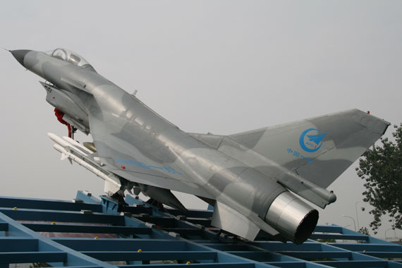 中國自主研制殲十戰(zhàn)機(jī)。圖為一航大廈前的殲十全比例模型。