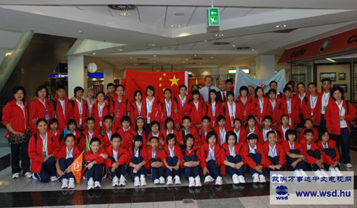 記者在機(jī)場(chǎng)暫短的時(shí)間里采訪到災(zāi)區(qū)青少年代表團(tuán)領(lǐng)隊(duì)、教育部參贊孫玲女士,她介紹了這次來匈的災(zāi)區(qū)孩子情況,他們都是成都地區(qū)下屬受災(zāi)最嚴(yán)重三個(gè)市中的都江堰市與彭州市的孩子,地震孤兒是父母雙亡,沒有親屬收養(yǎng)的孩子,這些孩子已先到俄羅斯療養(yǎng),我們這個(gè)團(tuán)的孩子是失去親人,親屬受傷或死亡成為單親家庭的孩子,是受災(zāi)地區(qū)較重的孩子,他們?cè)诘卣鹬斜憩F(xiàn)的非常勇敢、頑強(qiáng),他們家中的住房在地震中震垮了,所有孩子的學(xué)校在地震中倒塌了,他們住在臨時(shí)住房中,也在臨時(shí)房子中上學(xué)。孩子年齡最小的13歲最大的16歲,所有孩子都會(huì)說四川話,記者也是半個(gè)四川人,記者用四川話向孩子們問好!所有孩子用四川話回答,現(xiàn)場(chǎng)氣氛非常融洽,一下拉近了與孩子的距離。
