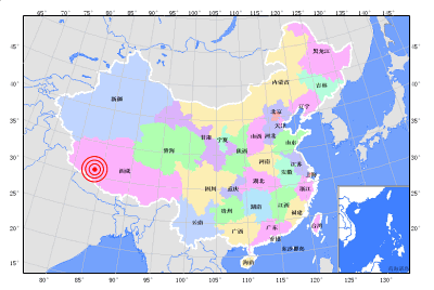 中新網(wǎng)8月25日電 據(jù)中國國家地震臺網(wǎng)測定,北京時間2008年8月25日21時22分,在西藏日喀則地區(qū)仲巴縣(北緯31.0度,東經(jīng)83.6度)發(fā)生6.8級地震。