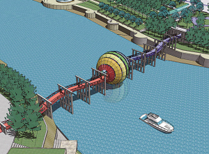 該市市政公用局周科長(zhǎng)介紹,分界線上的標(biāo)志物將與淮安一歷史遺存老橋墩(規(guī)劃建設(shè)的“紅橋”)相融合一并建設(shè),該橋始建于上世紀(jì)三十年代,曾見證過淮安的滄桑歷史,分界線上的標(biāo)志物與具有一定歷史意義的老橋墩相融合,更增添了城市特色,也深化了文化內(nèi)涵。標(biāo)志物的“長(zhǎng)相”是一個(gè)球形,位于紅橋中間位置,亦是河道中心線位置。以球形為母體,分為南北兩半球,北側(cè)為漸變冷色調(diào),南側(cè)為漸變暖色調(diào),喻意地球上的南北氣候特征。行人可從球中穿過,感受跨越南北氣候帶的感觀變化!(沈國(guó)良 井建國(guó) 朱鼎兆)