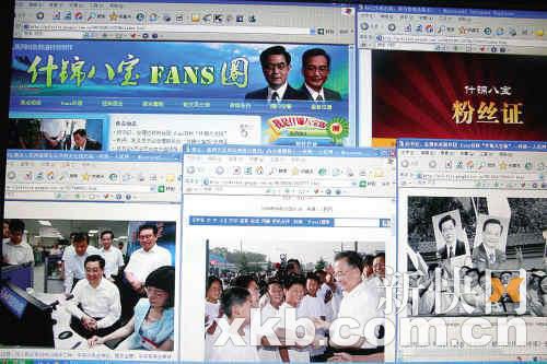 “祝賀您,成功加入‘什錦八寶粉絲圈’!弊蛉罩形,家住天河車陂的陳女士輕點(diǎn)鼠標(biāo),如愿以償獲得一本由人民網(wǎng)生成的胡錦濤和溫家寶的注冊(cè)粉絲證!翱偹阏业浇M織了!”在汶川地震后被總書記和總理機(jī)場(chǎng)“會(huì)師”照片深深感動(dòng)的陳女士,像追星一樣在網(wǎng)絡(luò)上搜尋著“濤哥”和“寶寶”的消息。后來她發(fā)現(xiàn),網(wǎng)上和她懷著一樣興趣的人還真不少,一些人竟自發(fā)組成了后援粉絲團(tuán)。