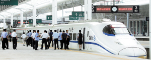 從9月24日起,每日將有4對(duì)京津城際高鐵往返于北京—塘沽兩地,全程用時(shí)56分鐘左右,票價(jià)分為三檔,特等座為118元,一等座為84元,二等座為70元。最早一班車(chē)10:45從北京南開(kāi)往塘沽,最晚一班車(chē)19:59由塘沽開(kāi)往北京南站。這四對(duì)高鐵列車(chē)將在天津站?浚商旖蛘鹃_(kāi)往塘沽的票價(jià)分別為特等座19元,一等座15元,二等座12元。昨天,一列京津城際高速列車(chē)15:55由北京南站開(kāi)往塘沽站,16:49準(zhǔn)點(diǎn)到達(dá)塘沽站,進(jìn)行了運(yùn)營(yíng)前的全面試跑,以確保24日順利投入運(yùn)營(yíng)。