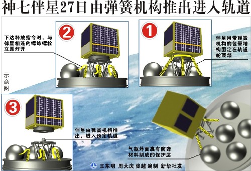 圖表:神七伴星27日由彈簧機構(gòu)推出進入軌道 (圖片來源:新華網(wǎng))