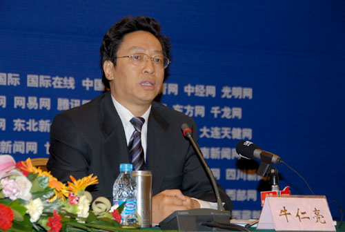 山西省副省長牛仁亮在第三屆網(wǎng)絡(luò)媒體山西行開幕式上介紹山西省情。