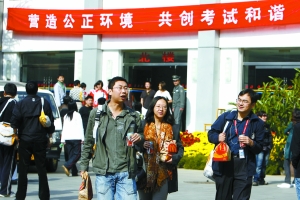 昨日11時(shí)許,北京勞動(dòng)保障職業(yè)學(xué)院,考生們完成考試走出考場(chǎng)。孫純霞 攝