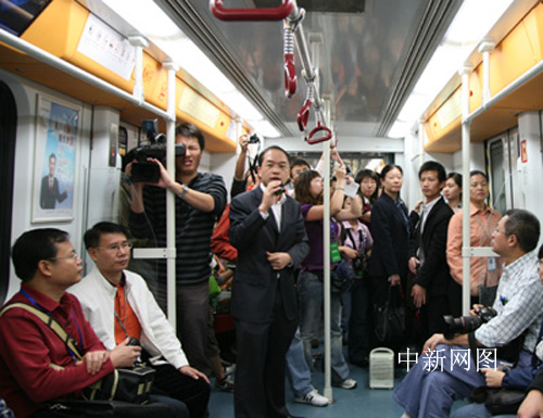 中新網(wǎng)廣州11月10日電 10日上午,參加全國重點(diǎn)網(wǎng)絡(luò)媒體廣東行的記者一行數(shù)十人,參觀并乘坐了廣州地鐵三號(hào)線。據(jù)介紹,廣州計(jì)劃在2010年亞運(yùn)會(huì)開幕之前建成230公里地鐵。
