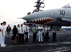 訪美期間,中國(guó)海軍官兵參觀美國(guó)航母。