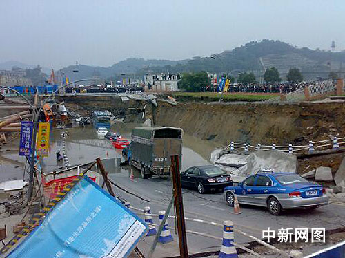 浙江省省長呂祖善已經(jīng)及時(shí)趕到事故現(xiàn)場指揮搶救工作。中共杭州市委書記王國平、杭州市市長蔡奇也已分別趕到現(xiàn)場指揮救援工作。據(jù)剛剛召開的救援工作會議透露,在坍塌事故現(xiàn)場,坍塌口壓了50多人,目前生死不明。