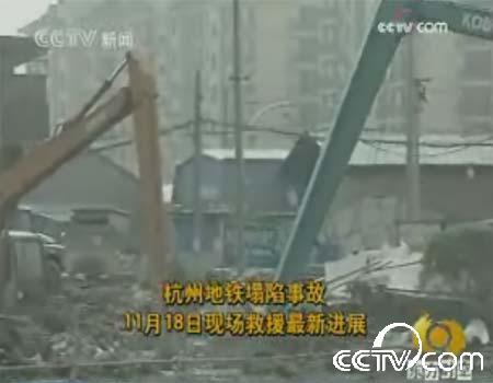 記者王克生:杭州地鐵工地搶險施救工作還在緊張進行,到目前救援人員發(fā)現(xiàn)的還是那七名遇難人員,初步核實還是有14個人下落不明,根據目前掌握的情況和現(xiàn)場的情況分析,因為塌陷的地方已經完全被掩埋了,另外里面還有水,所以這14個人生還的希望已經不是特別大了。經過昨天晚上和今天上午連夜不斷的工作,原先倒塌坑內橫七豎八的鋼管已經清除了,根據現(xiàn)場救援專家的意見,救援的重點是盡快清理塌陷厚約大約10米左右的瘀泥等雜物,防止可能出現(xiàn)對被困人員身體的傷害,救援工作目前主要以人工開挖的方式為主,可能的情況下再動用一些大型的施工設備,為了加快進度,救援人員用水沖刷堅固,然后把泥漿泵稀釋地面,估計稍后會發(fā)現(xiàn)遇難人員。