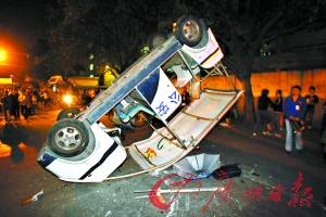 記者昨晚8時左右趕至現(xiàn)場,發(fā)現(xiàn)路口已經(jīng)聚集了數(shù)十名警察和治安員。當(dāng)記者剛剛走進開達(dá)玩具廠,就發(fā)現(xiàn)在路邊綠化帶旁已經(jīng)有5輛巡邏摩托車被放倒在地,車燈完全被砸壞,再往前行不到20米,就發(fā)現(xiàn)有2輛巡邏警車被掀翻砸爛在地,初步估計有近千人在工廠門口聚集。記者在人群中前行,沿路都是被砸爛的警車玻璃碎片。目擊者告訴記者,事故發(fā)生在晚上7時左右,目前已有5人受傷。