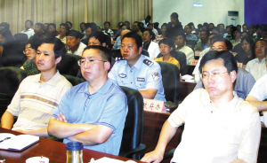 前天上午11點(diǎn),記者來(lái)到科普畫(huà)廊前,找到了市民說(shuō)的“睡覺(jué)照”。這是一組關(guān)于打擊非法傳銷(xiāo)的宣傳資料。資料包含了云南省各地打擊非法傳銷(xiāo)的成績(jī)展示。在這組展示中,有一幅“打擊傳銷(xiāo)專(zhuān)項(xiàng)行動(dòng)電視電話會(huì)議”的圖片,從圖片上可以看出,這次會(huì)議是昭通市召開(kāi)的。而在圖片正中間,有3人正襟危坐,中間一人雙手抱在胸前,眼睛卻是閉著的。就是這么一閉,就引來(lái)了多數(shù)市民的好奇和觀望?破债(huà)廊處在人潮集中的翠湖邊,經(jīng)過(guò)的市民很多,不少市民駐足在櫥窗前指指點(diǎn)點(diǎn),議論著這幅圖片。