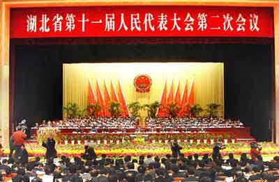 1月13日,武昌洪山禮堂門外鮮花盛開、彩旗飄揚(yáng)。上午9時(shí),湖北省第十一屆人民代表大會(huì)第二次會(huì)議在洪山禮堂隆重開幕。