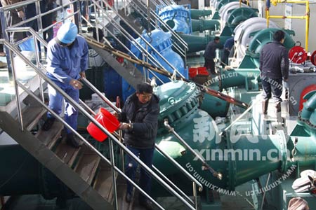 昨晚11點(diǎn),搶修好的3臺(tái)泵房設(shè)備從閔行電機(jī)廠運(yùn)回至松江第二水廠。11點(diǎn)35分,第一臺(tái)設(shè)備安裝調(diào)試完畢;11點(diǎn)40分,開始恢復(fù)向受影響的城區(qū)居民供水。到今天早上,松江第二水廠供水能力已恢復(fù)到正常水平。(薛驍翔)