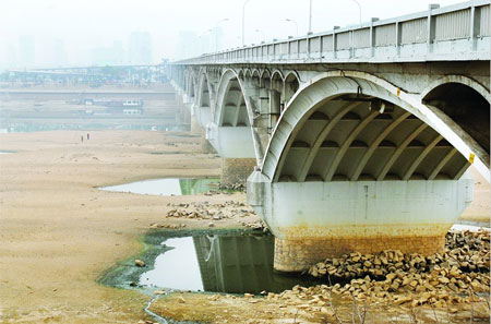 自2008年11月中旬至今,我省持續(xù)晴天少雨,江、河、湖水位不斷下降,湘江中下游水位連創(chuàng)歷史新低。2008年11月18日,湘江長(zhǎng)沙段出現(xiàn)有記錄以來(lái)的最低水位——25.15米,這也是近30年來(lái)湘江長(zhǎng)沙段的最低水位。長(zhǎng)沙市水文站表示,去年12月的一場(chǎng)大范圍的雨雪后,湘江水位一度回升到25.60米的歷史同期最高,但是由于今年1月降雨持續(xù)偏少,到目前湘江干流各控制站再次降至接近“死水”狀態(tài),長(zhǎng)沙站水位從1月25日開始就在25.30米左右徘徊。