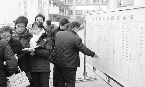 孫靚靚等20名女青年報名競聘,她們中有團江蘇省委的主任科員、副主任科員,泰州市委辦公室和泰州市財政局的副主任科員,泰州市高港區(qū)組織部干部教育科干部等。12月14日,她們和其他應(yīng)試者一起參加了筆試;12月16日公布的筆試成績,孫靚靚名列相同職位的第五名;12月27日,孫等進入面試;12月30日公開選拔領(lǐng)導(dǎo)干部綜合成績出爐,孫的綜合成績躍居相同職位的第一名,進入體檢等程序。