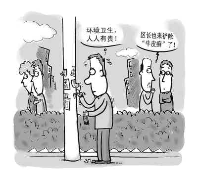 當日上午,濟南經(jīng)十路槐蔭段,一支特殊的勞動隊伍吸引了眾多行人的目光。從擔山立交橋到槐蔭區(qū)政務中心,近4公里路段,沿路看去,都是忙碌的工作人員。他們有的擦護欄,有的鏟除非法小廣告,有的掃綠化帶里的污物,有的蹲下身擦路面上的痰漬。旁邊幾位健身的老人見狀,主動加入到了清理垃圾的行列。在兒童醫(yī)院東側(cè),槐蔭區(qū)區(qū)長楊峰手拿一個噴壺和一把小鏟子,用心清理非法小廣告?吹揭患译娦艩I業(yè)廳前的電線桿上貼滿小廣告,他先是用噴壺噴水,把紙弄濕,然后用小鏟子快速鏟凈。不多會兒,桿子上的非法小廣告消失殆盡。接下來,他又用抹布把桿子擦得干干凈凈。