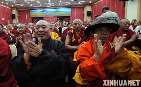 “維護社會穩(wěn)定、維護社會主義法制、維護人民根本利益;自覺做到不參與分裂祖國的活動,不參加非法游行示威等擾亂社會秩序的活動!边@條新增加的內容受到了與會高僧活佛和僧人的擁護。