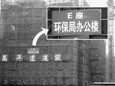 縣發(fā)改委批復(fù)的即將竣工的商務(wù)用房上掛著政府機(jī)關(guān)牌子