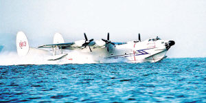 這是一架外形奇特的飛機(jī):機(jī)翼兩側(cè)各垂有一個(gè)巨大的橄欖球狀物,機(jī)腹是傾斜的切割面形狀,好似巨輪的船身。看到記者一臉疑惑,值班領(lǐng)導(dǎo)、政委張汝翼為記者指點(diǎn)迷津:“這就是我們部隊(duì)號(hào)稱‘海天鯤鵬’的水上飛機(jī),是全軍僅有的一種特殊機(jī)種,不僅能航行在遼闊的江河湖海,還能馳騁在藍(lán)天之上,機(jī)翼兩側(cè)配有保持浮力和平衡的‘浮筒’……”