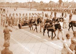 他說,當時炮兵方隊是第四個通過天安門廣場的隊伍,以輕迫擊炮、重迫擊炮、戰(zhàn)防炮、山炮和野炮、榴彈炮、高射炮等7種上百門火炮陣容出現(xiàn);鹋谟尚〉酱螅傻偷礁,依次前進,有的火炮是用騾馬拽著通過天安門的。