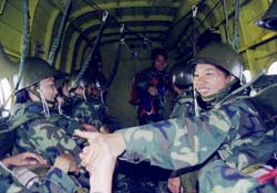 這支女子跳傘隊自1991年7月組建至今,隊員們跳過了裝備到空降兵部隊的各種傘型、各種機(jī)型,經(jīng)歷了南疆海島、水網(wǎng)稻田、戈壁沙漠、鄂北原始森林等各種復(fù)雜地形的空降演習(xí)和試訓(xùn)任務(wù),成為空降兵部隊能跳任何機(jī)型、傘型,敢跳高、新、險科目的“專業(yè)”傘兵。她們過硬的軍事技能,無不來自于她們一次次搏擊風(fēng)浪、一次次趟過空降領(lǐng)域“沼澤地”的不平凡的經(jīng)歷。
