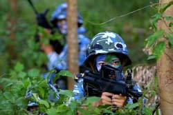 何新瑛指導員向我們介紹,面對未來戰(zhàn)場的惡劣環(huán)境,面對兩棲偵察女兵隊所擔負的特殊任務,其訓練的難度強度是一般人難以想像的。作為一名女子陸戰(zhàn)隊員,每天除完成正常的訓練課目外,在體能上必須堅持做到“五個一百”,即100個俯臥撐,100個仰臥起坐,100個蹲下起立,100個曲臂伸,100次往返跑;同時還要綁著10多斤的沙包練5公里越野。這些最基本的體能訓練要求,使每個姑娘都面臨著生理和心理的考驗。盡管每年新入伍的戰(zhàn)士都有累得掉眼淚,但在部隊的教育以及戰(zhàn)友的關心幫助下,姑娘們都很堅強,憑著忠誠于黨、獻身使命的崇高追求和熾熱情懷,一無往顧地沖在軍事斗爭準備的第一線。