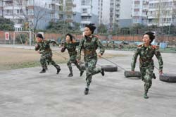在女子特警隊(duì)營(yíng)區(qū),一隊(duì)新入伍的女戰(zhàn)士正在訓(xùn)練。據(jù)陪同我們的隊(duì)長(zhǎng)王安斌介紹,特警隊(duì)擔(dān)負(fù)著四川總隊(duì)每年的女兵新訓(xùn)任務(wù),女特警隊(duì)員就是從這里層層選拔出來(lái)的。每年新兵訓(xùn)練結(jié)束時(shí),特警隊(duì)通過(guò)組織對(duì)全體新戰(zhàn)士進(jìn)行政治思想摸底,文化水平、心理素質(zhì)測(cè)試及軍事體育、擒敵技術(shù)、戰(zhàn)術(shù)等科目綜合考核,按照層層選拔、優(yōu)中選優(yōu)的原則,遴選出軍事過(guò)硬、素質(zhì)全面的新同志補(bǔ)充到女子特警隊(duì)。作為一名女子特警隊(duì)員,她們?nèi)腙?duì)后還必須在心理上、生理上承受常人難以想象的磨礪,經(jīng)過(guò)特種戰(zhàn)術(shù)、攀登、射擊、擒敵等20多個(gè)科目的訓(xùn)練,過(guò)好體能關(guān)、心理素質(zhì)關(guān)、特戰(zhàn)技能關(guān),才能真正實(shí)現(xiàn)脫胎換骨的轉(zhuǎn)變,成為一位名符其實(shí)的特戰(zhàn)隊(duì)員,而這一切都是依靠特殊的訓(xùn)練來(lái)實(shí)現(xiàn)的。