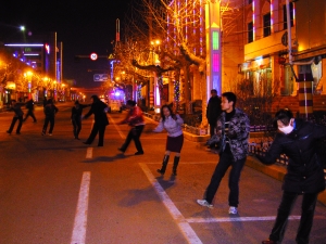 每晚7點,鳳縣主街道上都有羌舞“表演”,警察維持秩序,禁止車輛過街
