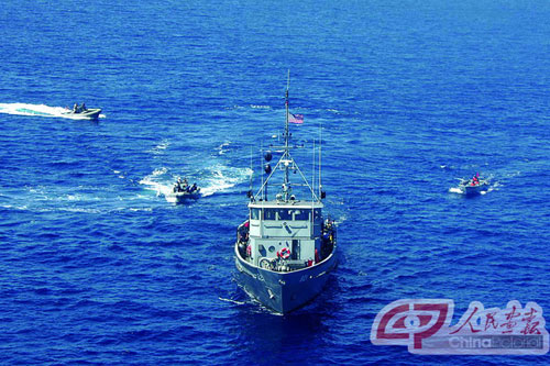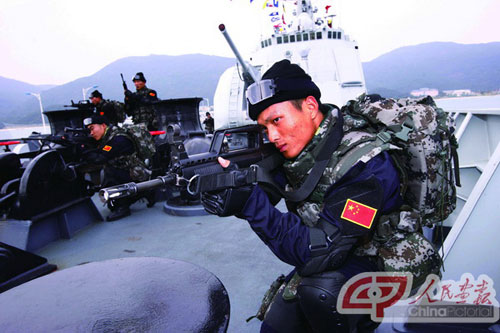 2005年,“和平使命—2005”中俄聯(lián)合軍演正式在俄羅斯的符拉迪沃斯托克和我國山東半島及附近海域拉開帷幕,為期八天的演習(xí)跨越兩國陸、海、空域,共分“海上封鎖作戰(zhàn)、兩棲登陸作戰(zhàn),強制隔離作戰(zhàn)”三個階段,向外界展示了強大的綜合作戰(zhàn)能力,顯示人民海軍與外國海軍合作的層次、規(guī)模和難度不斷提高。