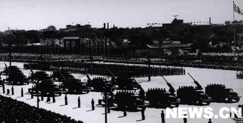 閱兵歷時五十分鐘結(jié)束,接著開始了六十萬人的群眾大游行。