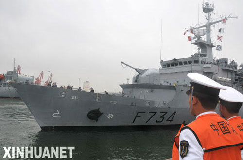 在應(yīng)邀前來參加海上檢閱活動的21艘外國艦艇中,法國海軍“葡月”號導(dǎo)彈護(hù)衛(wèi)艦是來訪中國次數(shù)最多的。它曾先后7次訪問中國,2002年還對青島進(jìn)行過友好訪問。
