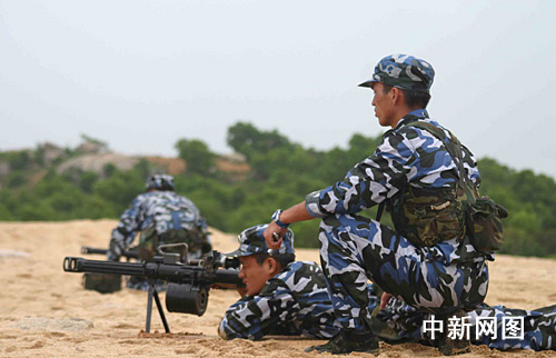 資料圖:中國海軍陸戰(zhàn)隊某部在南海之濱水際灘頭進行各種實兵演練,通過小比武、小競賽等形式,有效地提高了部隊戰(zhàn)斗力。作者:韓海冰