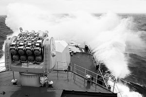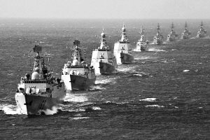——2002年5月至9月,中國(guó)海軍艦艇編隊(duì)首次環(huán)球航行,共穿越15條著名海峽水道,橫跨68個(gè)緯度,6次穿越赤道,訪問(wèn)10個(gè)國(guó)家和港口,總航程33000海里。至此,中國(guó)海軍艦艇編隊(duì)壯游三大洋。同時(shí),一個(gè)新的重大轉(zhuǎn)折也在悄然完成。軍艦走出國(guó)門,開(kāi)始從單純航渡出訪,轉(zhuǎn)變?yōu)檫h(yuǎn)航訓(xùn)練結(jié)合出訪,甚至是以訓(xùn)練為主。征服遠(yuǎn)海大洋的能力,體現(xiàn)著一支現(xiàn)代海軍的訓(xùn)練水平。1980年10月,南海艦隊(duì)艦艇編隊(duì),首次出巴林塘海峽到太平洋遠(yuǎn)航訓(xùn)練。經(jīng)過(guò)海峽西口的“魔鬼三角洲”時(shí),因缺乏經(jīng)驗(yàn),一艘軍艦上的10名艦員被巨浪打下大海,2人遇難。這是人民海軍走向大洋付出的血的代價(jià)。此后,海軍遠(yuǎn)航編隊(duì)經(jīng)驗(yàn)越來(lái)越豐富,不畏暗礁險(xiǎn)灘,勇闖驚濤駭浪。在南中國(guó)海,戰(zhàn)艦遭遇狂風(fēng)巨浪,重達(dá)1噸的鐵錨被風(fēng)浪掀上甲板;在太平洋,編隊(duì)遭遇持續(xù)半個(gè)月之久的大風(fēng)浪,滿載排水量為數(shù)萬(wàn)噸的補(bǔ)給艦強(qiáng)烈震顫,逆風(fēng)頂浪,頑強(qiáng)前進(jìn);在比斯開(kāi)灣,編隊(duì)遭遇12級(jí)大風(fēng),艦體左右搖擺近30度,艦艉螺旋槳多次露出海面……20多年過(guò)去,人民海軍遠(yuǎn)航訓(xùn)練已經(jīng)發(fā)展成為一種常態(tài):每年有上百艘次水面艦艇駛向遠(yuǎn)海大洋,晝夜連續(xù)航行從數(shù)百海里到數(shù)千海里,潛艇水下隱蔽待機(jī)由數(shù)十天到數(shù)月,航空兵長(zhǎng)途奔襲由一般氣象條件到復(fù)雜氣象條件,上千艘次艦機(jī)在太平洋海域進(jìn)行多課目訓(xùn)練。