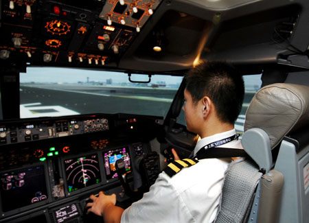 我們的訓(xùn)練都是在模擬機(jī)上完成的。主要是針對起飛時(shí)一臺發(fā)動機(jī)失效、著火及飛脫,空中的部分操縱系統(tǒng)故障,高空的發(fā)動機(jī)故障,座艙急劇釋壓,著陸時(shí)部分起落架不能放下等。比如遇上湍流,飛行員首先會把飛機(jī)速度降低到穿越顛簸區(qū)域的速度,將發(fā)動機(jī)的“點(diǎn)火開關(guān)”扳到“連續(xù)點(diǎn)火”,防止發(fā)動機(jī)熄火。有時(shí)還需要斷開“自動駕駛儀”人工飛行。