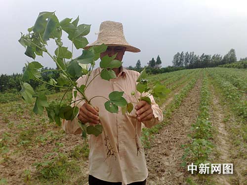 中新網(wǎng)宜昌7月11日電 (記者 劉良偉 上官純青) 棉花是湖北枝江市百里洲鎮(zhèn)的支柱產(chǎn)業(yè),時(shí)值棉花開花季節(jié),該鎮(zhèn)100余戶棉農(nóng)高興不起來,大片棉花出現(xiàn)黃葉且不長個頭。據(jù)枝江市農(nóng)業(yè)行政執(zhí)法大隊(duì)的統(tǒng)計(jì),該鎮(zhèn)200余畝棉花絕收,800余畝棉花面臨欠收。據(jù)初步調(diào)查,疑與棉農(nóng)使用一種除草劑有關(guān),目前生產(chǎn)廠家已趕赴枝江處理此事。