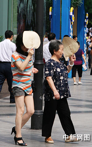 正午時分,熱浪襲人,路上行人稀少。記者在街頭看到,偶爾經過的行人都盡量走在樹蔭下或可遮陽的地方,太陽傘、墨鏡、帽子齊齊上陣,“全副武裝”以減少太陽直射的灼熱感。