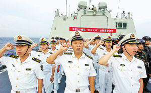 宣誓后,編隊指揮員、東海艦隊副司令員王志國代表全體官兵表示:“要以實際行動,為維護國家利益貢獻(xiàn)力量!為人民軍隊添光彩!為偉大祖國爭榮譽!”