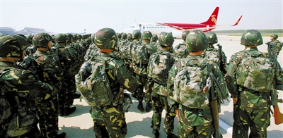 今天(1日)上午11時30分,沈陽桃仙機場,沈陽軍區(qū)某摩步師150名官兵和17臺裝備組成的先期偵察戰(zhàn)斗群,搭乘一架客機和一架貨機向大西北出征。隨后,該師萬人千車將采取鐵路輸送、摩托化開進兩種機動方式跟進,從東北渤海之濱直撲西北賀蘭山麓。至此,“跨越—2009·青銅峽”實兵檢驗性演習(xí)正式拉開戰(zhàn)幕。