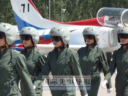 《國際先驅(qū)導(dǎo)報》記者于冬 特約撰稿劉轉(zhuǎn)林、荊繼洪發(fā)自北京 數(shù)十架戰(zhàn)鷹昂首列陣,16名殲擊機女飛行員意氣風(fēng)發(fā)。