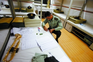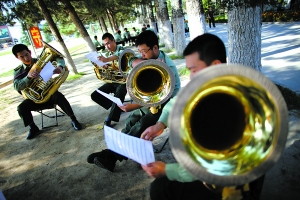6月進(jìn)入聯(lián)合軍樂團(tuán)駐地后,逄博和父親都住在一棟樓,但是分走不同的門洞。逄博說,他很少去找父親,也從沒有向父親求助過。封閉集訓(xùn)3個(gè)多月來,逄博總是和隊(duì)友一起埋頭苦練。早上6點(diǎn)起床,除了吃飯午休,一直練到晚上七八點(diǎn),然后還要背曲譜。