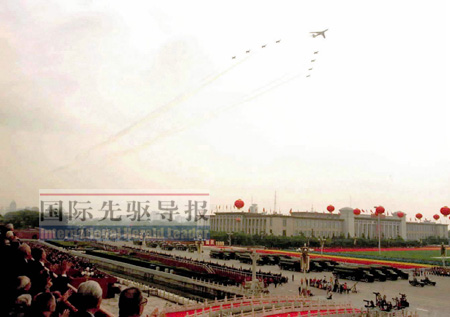 《國際先驅(qū)導報》記者于冬發(fā)自北京 “保持狀態(tài),加入模擬航線!”9月12日上午,華北平原某空軍機場,云翳低垂,薄霧輕繞,七架國產(chǎn)新型戰(zhàn)機呼嘯而起,直穿云霄。10月1日國慶節(jié)當天,將在天安門上空接受祖國和人民的檢閱。