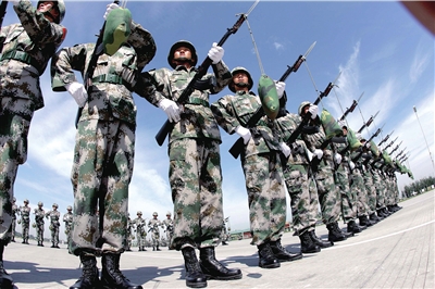 “啪!啪!啪!”提槍!握槍!劈槍!隨著洪亮的口令聲,預備役方隊隊員手中的八一式自動步槍,節(jié)奏分明、整齊劃一,瞬間以排山倒海之勢指向前方。在60周年國慶大閱兵中,預備役方隊是14支徒步方隊中唯一一支端槍受閱的方隊。