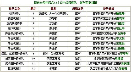 通過這樣一張圖表,空中閱兵的輪廓就更加清晰了。