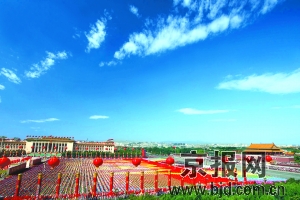 不經(jīng)歷風(fēng)雨怎能見彩虹!似乎是對偉大祖國60年來走過的不平凡道路的真實寫照,慶典前的天安門廣場在經(jīng)歷電閃雷鳴后終于撥云見日,迎來湛藍的天空和燦爛的陽光。今天上午10時,廣場上空天高云淡,日朗風(fēng)清,慶典典禮在良好的天氣條件下隆重舉行。