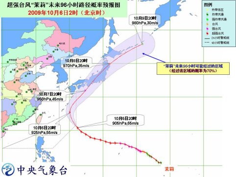另外,今年第18號超強(qiáng)臺風(fēng)“茉莉”的中心6日2時(shí)位于日本沖繩島那霸東南方大約750公里的西北太平洋洋面上,就是北緯21.1度、東經(jīng)132.5度,中心附近最大風(fēng)力仍有17級以上(65米/秒),中心最低氣壓為905百帕。
