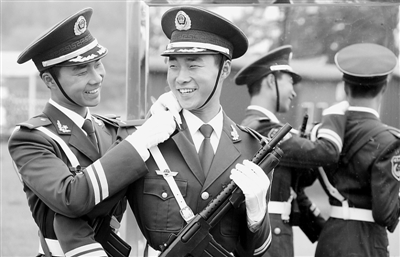 這個(gè)方隊(duì)60%是擁有雙學(xué)士學(xué)位的國防生,大多畢業(yè)于名牌大學(xué)。剛進(jìn)閱兵村時(shí),他們坦言:選擇受閱,或?yàn)殚_闊眼界,或?yàn)榉e累資本,或?yàn)榉峙鋫(gè)理想單位,等等!胺疥(duì)要走得齊,首先人員的思想要齊;強(qiáng)化當(dāng)代革命軍人核心價(jià)值觀,才能提升學(xué)員的精氣神。”方隊(duì)政委趙建雄對“癥”開“方”。