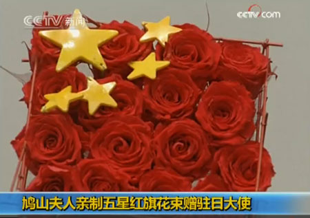 崔天凱還透露了一個小細(xì)節(jié):鳩山夫婦9日抵達(dá)北京時,他代表中方去機(jī)場迎接,意外收到一份首相夫人親手制作的禮物!八麄兌灰怀鰴C(jī)艙門,我就看到首相夫人手里拿了一束花,下來后她就交給我,說這是16朵花組成的,上面還有五顆星,就是中國國旗的圖案!