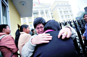昨日早晨7時(shí),大批法警進(jìn)入法院,并以3:1的警力配備提解被告人。7時(shí)30分,14輛警車?yán)鹁驯几胺ㄔ骸?/p>
