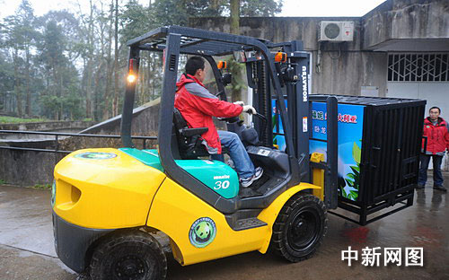 中新網(wǎng)成都11月27日電 (記者楊杰) 27日早上8時30分,在臥龍中國保護(hù)大熊貓研究中心白熊坪,工作人員一片忙碌,開始將赴澳大利亞的大熊貓“網(wǎng)網(wǎng)”、“福妮”裝籠,并送上卡車整裝待發(fā)。10時整,歡送“網(wǎng)網(wǎng)”、“福妮”儀式舉行,中澳雙方動物專家和相關(guān)官員出席。隨后,在家鄉(xiāng)人民祝福和不舍的目光中,車隊(duì)緩緩駛離雅安,前往成都雙流國際機(jī)場。